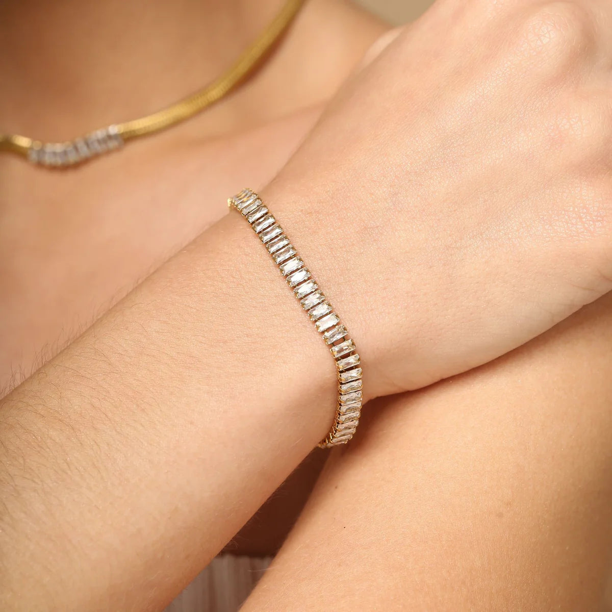 Consciously crafted: Made from stainless with 14k recycled gold and A+ cz stones. This bracelet is hypoallergenic, water-safe, and built to last without tarnishing. Sustainability never looked so effortless.