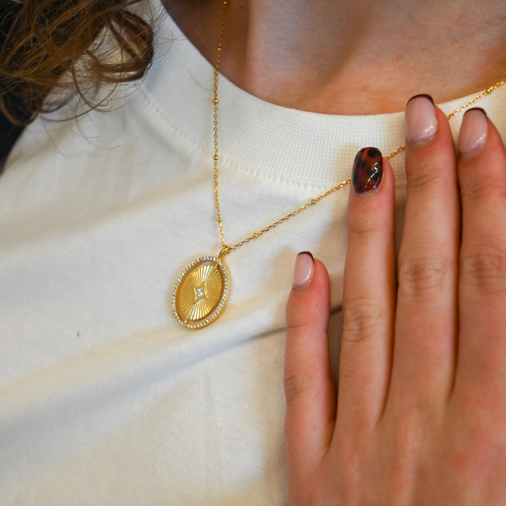 Meaningful pendant necklaces, tarot-inspired medallions, coin necklaces, initial necklaces, birthstones, and delicate charms — pieces that carry a story.