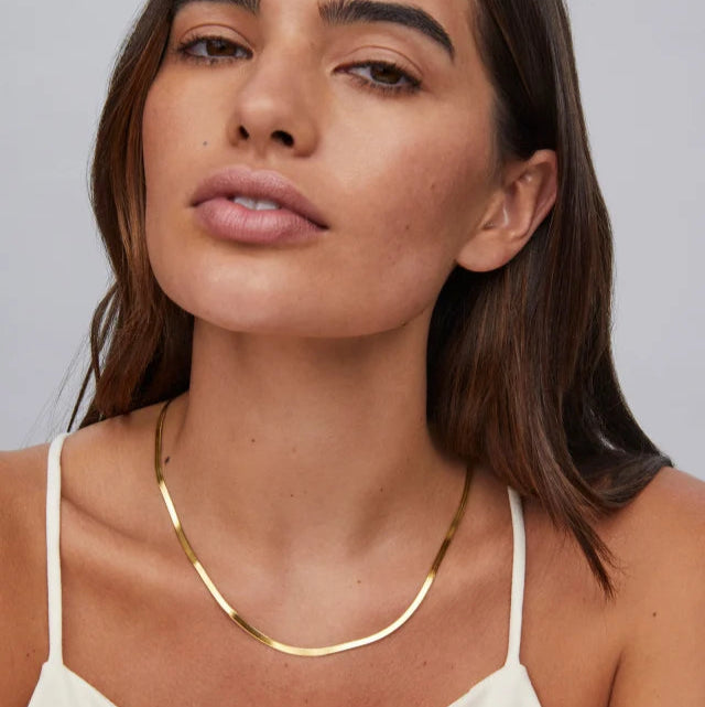 Paperclip chains, box chains, snake chains, herringbone chains, cable chains, and minimal layering chains in both gold and silver.