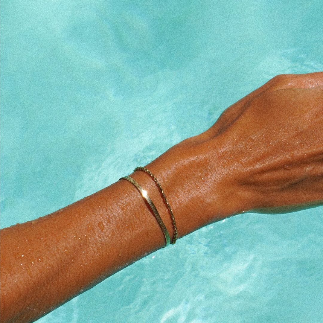 We use PVD (Physical Vapor Deposition), a high-quality, environmentally friendly plating method that’s 10x more durable than traditional gold plating. That means your jewellery won’t fade — no matter how often you swim, sweat or shower in it.