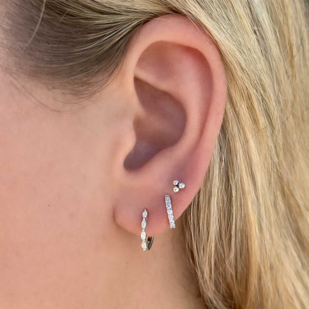 Deze piercing is gemaakt van recyclebaar roestvrij staal met een laagje naar keuze van 14 karaat gerecycled goud of zilver. Hij is duurzaam, bestand tegen verkleuring en zacht voor gevoelige oren – het bewijs dat duurzaamheid ook stijlvol kan zijn.